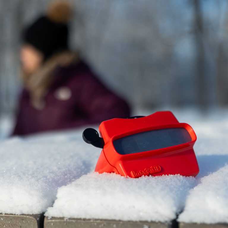 Le paysage hivernal, un peu plus dénudé qu’à l’habitude, permet d’avoir accès à des vues optimales pour y admirer les alentours et les différents points d’intérêt. Cela dit, Récits de berges vous offre carrément de « voir » l’histoire; ce qu’il y avait là où vous marchez et où vous regardez. Le tout se fait grâce à des visionneuses avec des roulettes de photos d’archives. « Ça va permettre un soutien visuel parce que le territoire paysager a beaucoup changé à travers les années, surtout du point de vue de l’île Saint-Quentin » souligne Alexandra Carignan, responsable de l’action culturelle et citoyenne à Culture 3R.