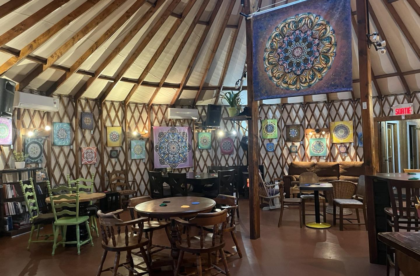 Une tradition depuis l’automne dernier, La Soirée des poètes du coin avec micro ouvert revient au printemps, ce 18 avril dans la yourte caxtonienne de Chez Mel & Nico où il sera également possible de participer à la création d’un mandala collectif! © Facebook Chez Mel & Nico, oeuvres de Thaïs Barbieux.