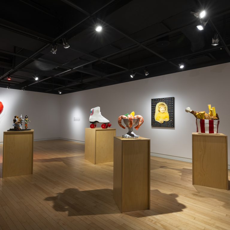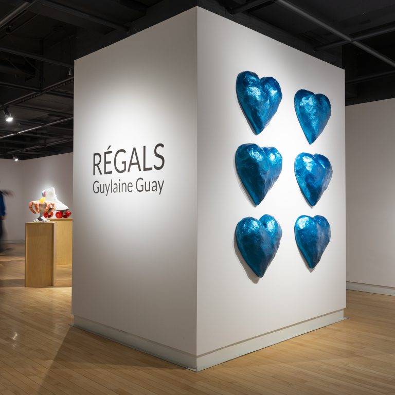 À quoi doit-on s’attendre avec RÉGALS outre des structures en papier mâché et de la poterie? À de l’art naïf, aux formes imparfaites et pailletées, traduisant un univers coloré teinté par les souvenirs d’enfance, l’amour, la joie, la nature et l’ouverture à l’autre. « Je trouve que l’art parfois, ça peut être épeurant. Je ne veux pas que les gens se sentent intimidés, mais invités à se rappeler leurs propres souvenirs. » Afin d’honorer sa vie de famille atypique et rendre l’art démocratique, Guylaine Guay a sollicité la collaboration de ses garçons et de son conjoint. Il sera donc possible de découvrir leurs créations à même l’exposition de l’artiste.