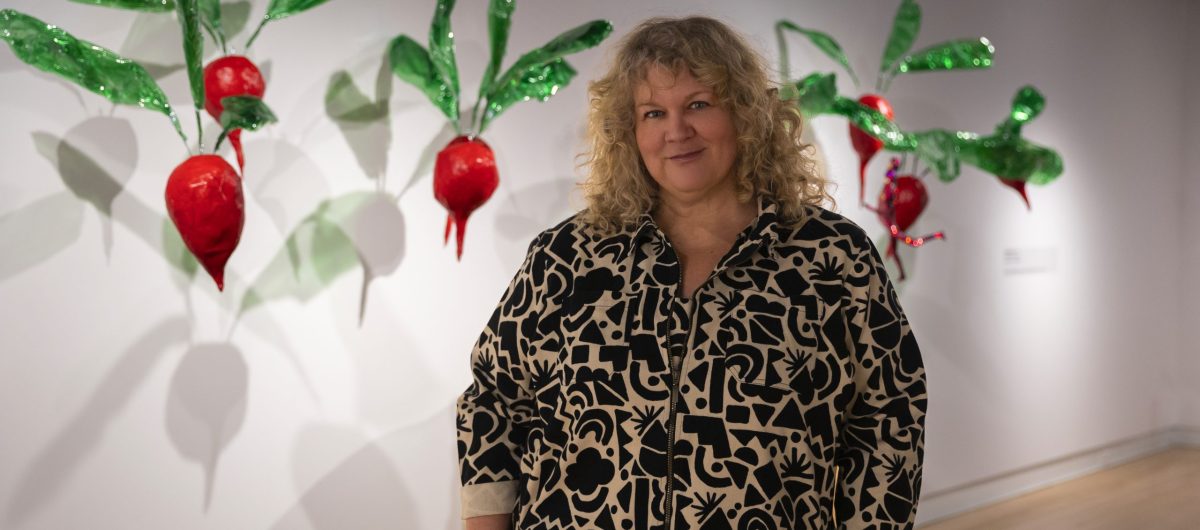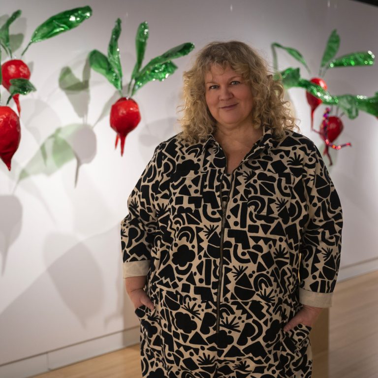 Guylaine Guay rencontre l’équipe de Culture Trois-Rivières en 2024 dans le cadre de son rôle d’ambassadrice pour l’exposition jeunesse Ressemble à personne ayant pour thématique principale la diversité corporelle. À partir de cet instant, l’artiste développe un attachement sincère pour l’équipe de Culture Trois-Rivières et le Centre d’exposition Raymond-Lasnier, mais également pour la ville de Trois-Rivières, qu’elle qualifie à la fois d’artistique et de poétique. « Je suis tombée en amour avec les gens de Culture Trois-Rivières. Tout le monde est tellement fin. Et le Centre Raymond-Lasnier, je capote sur cette place-là. Trois-Rivières est une ville que j’adore. Je m’y sens chez moi. » C’est dans ces circonstances que Guylaine Guay se voit offrir une occasion qu’elle ne peut refuser : créer sa propre exposition en arts visuels, projet qui l’habite depuis un certain temps. « C’est assez excitant! C’est la première fois que je fais des œuvres pour mon exposition à moi. »